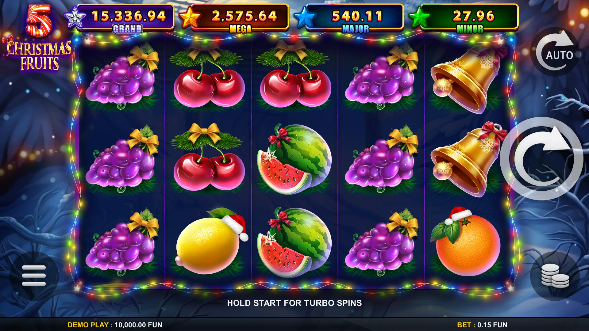 5 Christmas Fruits Felix Stars 96.59%, 94.39%, 92.25% 5 4 0.05 100 2000x Total Bet
